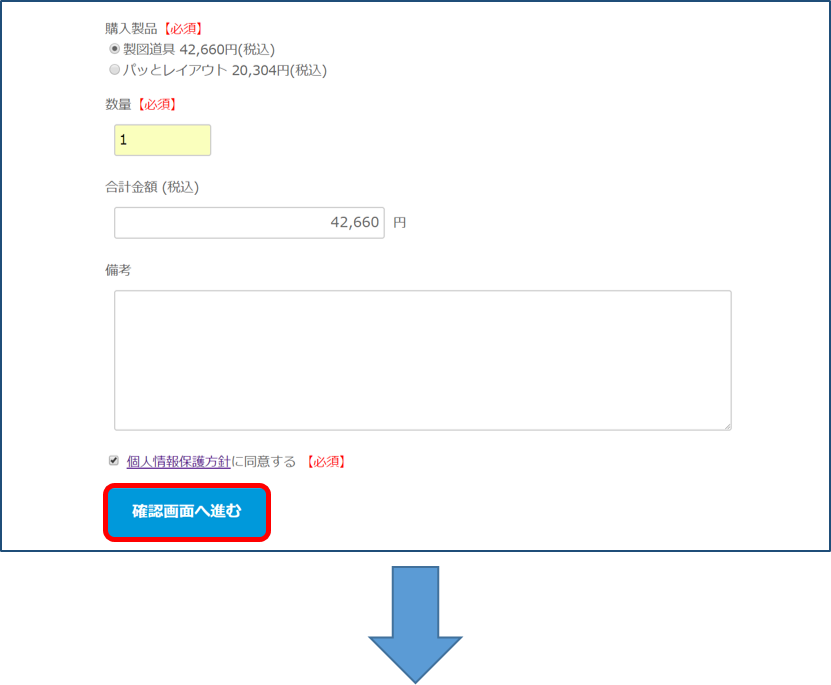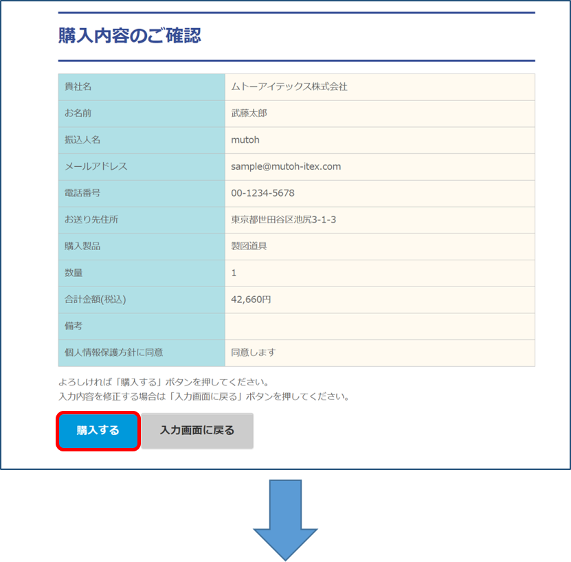 ③確認ページに遷移します。入力内容をご確認のうえ、